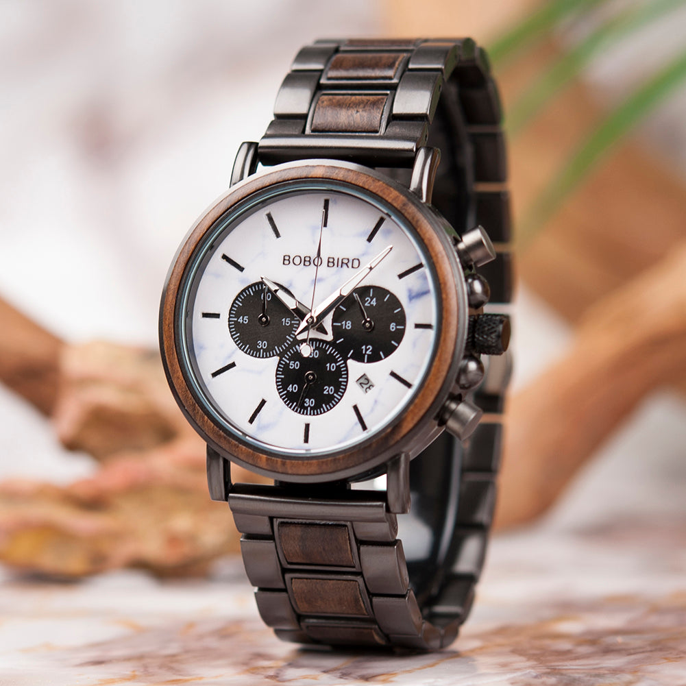 Des montres aux tonalités profondes et affirmées, façonnées dans des bois au...